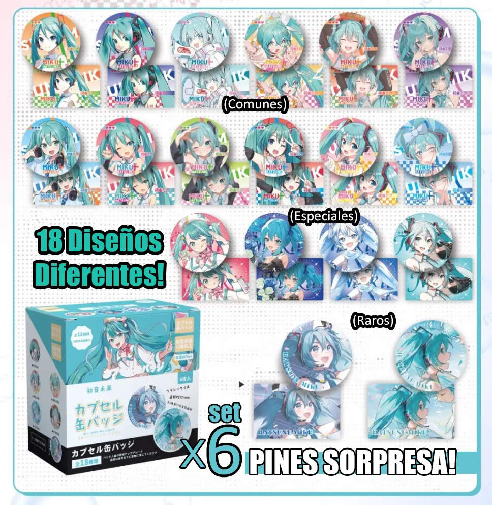 SET DE PINES X6 75MM CAJA SORPRESA : MIKU