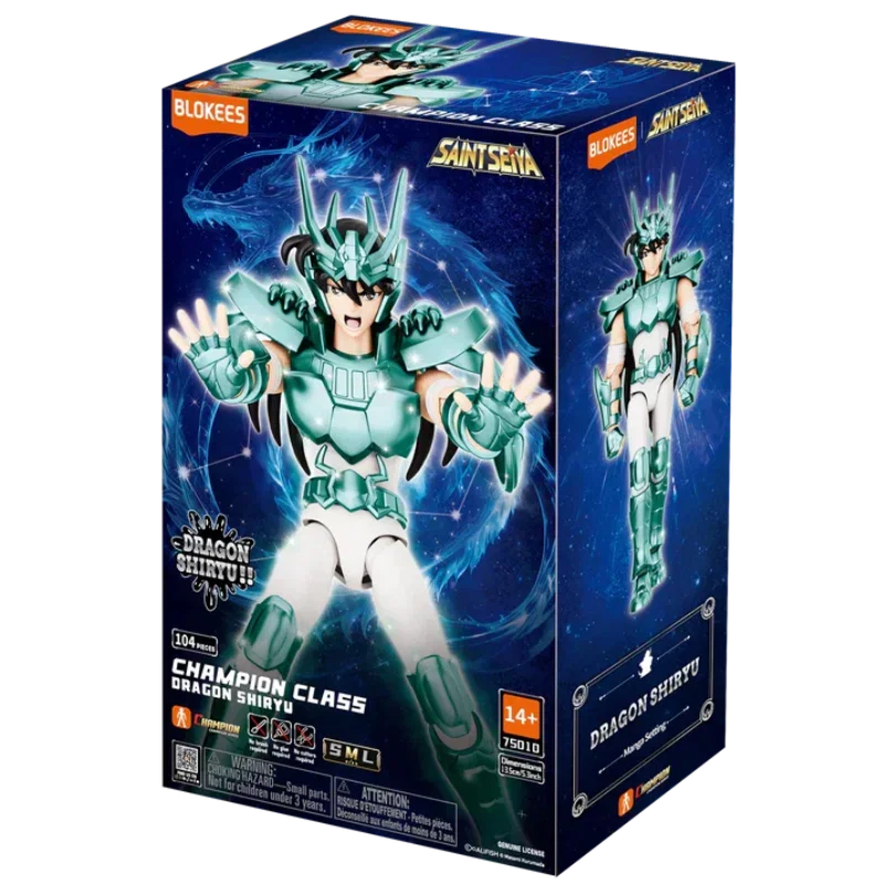 Desde el corazón del Templo del Dragón, el Dragón Shiryu asciende. Esta figura de 104 piezas del Dragón Shiryu mide 13,5 cm de alto y cuenta con 40 puntos de articulación, capturando fielmente el poder y la gracia del Santo Dragón. Cada pieza viene pre-pintada con detalles intrincados, recreando a la perfección su armadura dorada.