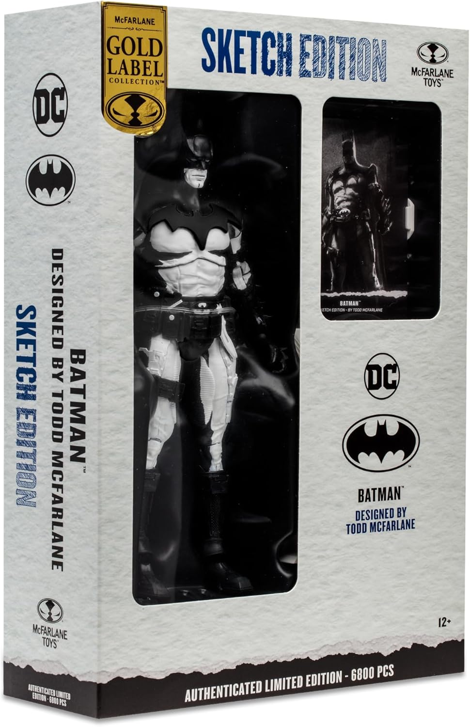 El Batman diseñado por Todd McFarlane se presenta en la edición del artista de bocetos, en una caja de diseño exclusiva.