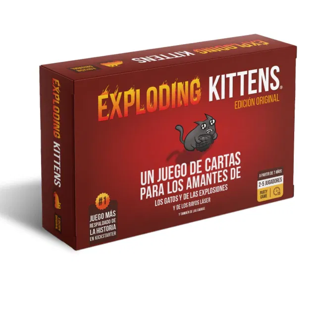 Eliminá a todos hasta que consigas ser el último jugador que ha sobrevivido al temible ataque de los gatos explosivos. Tomá cartas hasta que alguien explote con un EXPLODING KITTEN. Traicioná a tus amigos, evitá explotar… ¡Y sé el último sobreviviente para ganar!