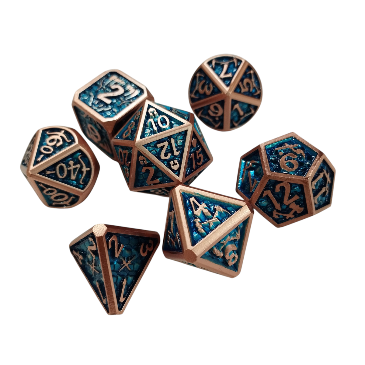 Set de 7 dados metálicos.
