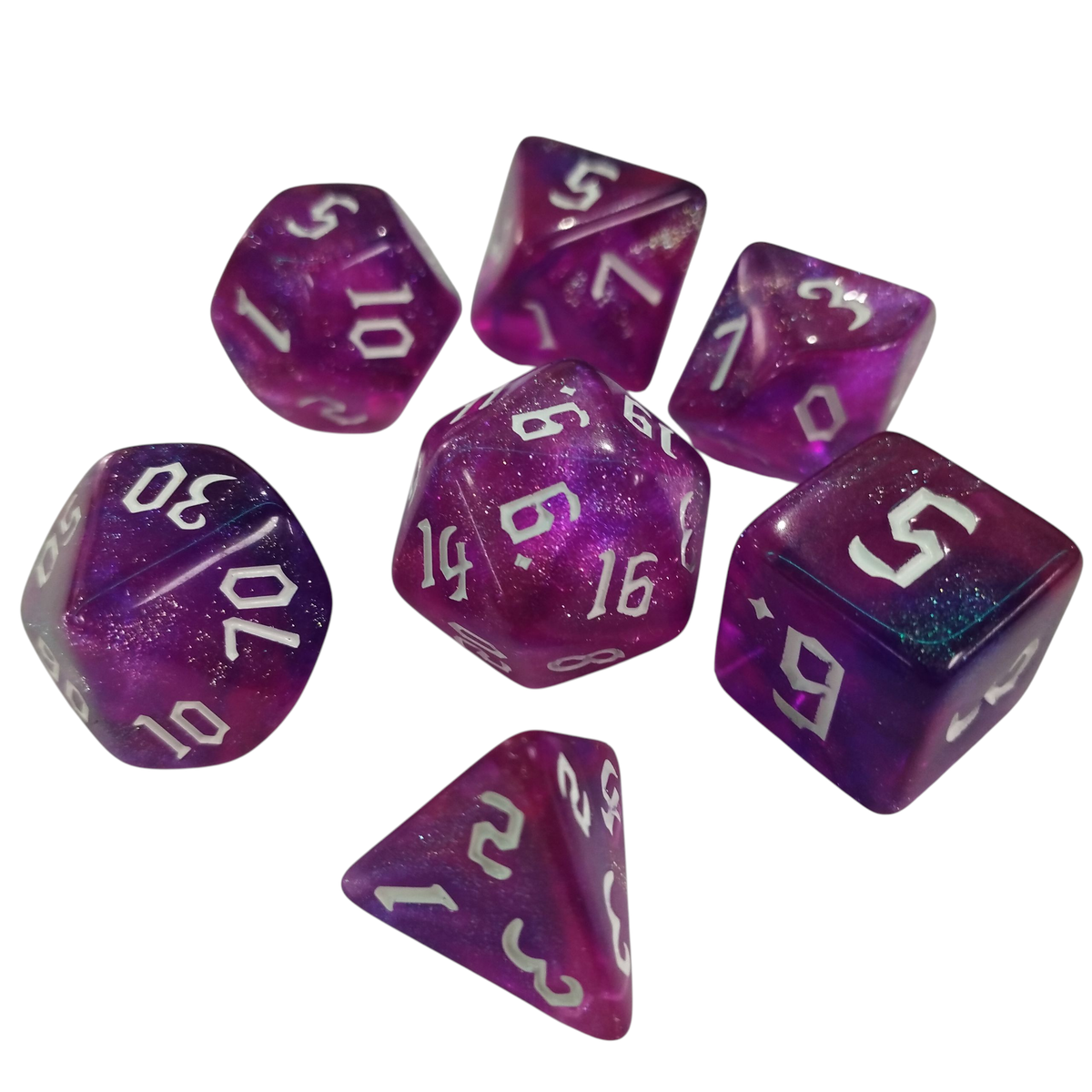 SET DADOS POLIEDRICOS X7 Violeta c/brillo