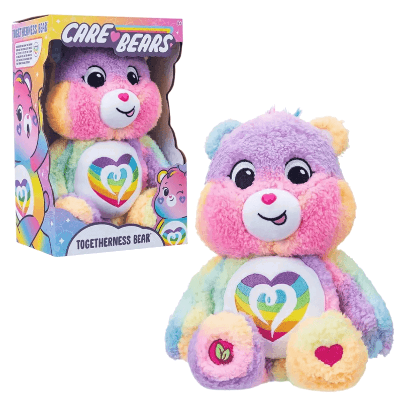 Los Ositos Cariñositos Cozy Collection vienen en tamaño mediano de 35 cm, fabricados en material ecofriendly y presentados en caja ventana. Cada oso incluye su insignia característica que representa valores y emociones de los Care Bears.
