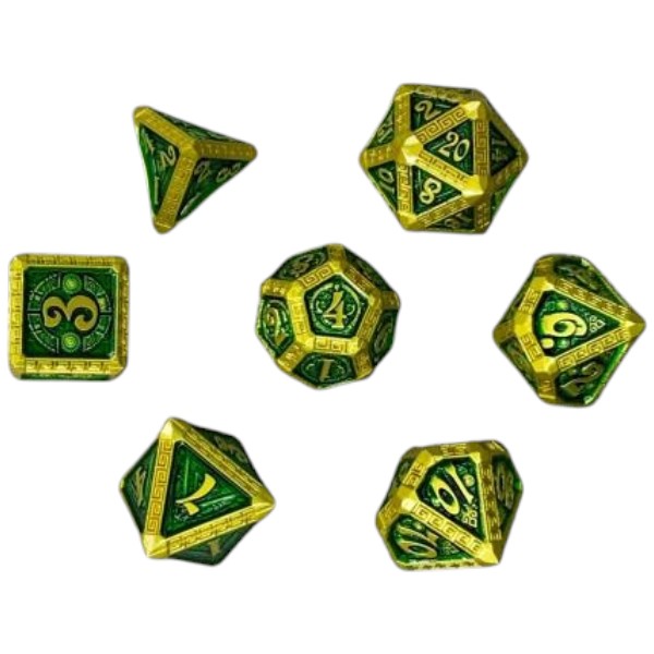 SET DADOS METALICOS Verde c/ dorado