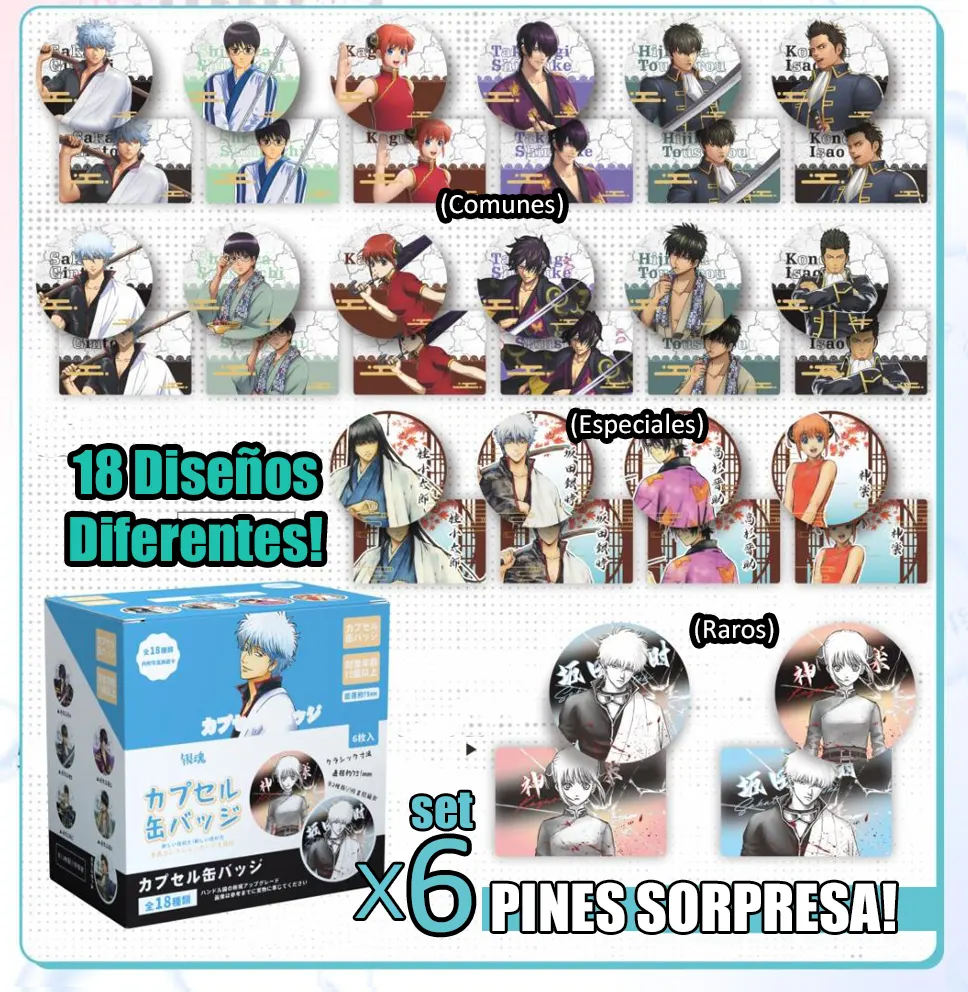 SET DE PINES X6 75MM CAJA SORPRESA : GINTAMA